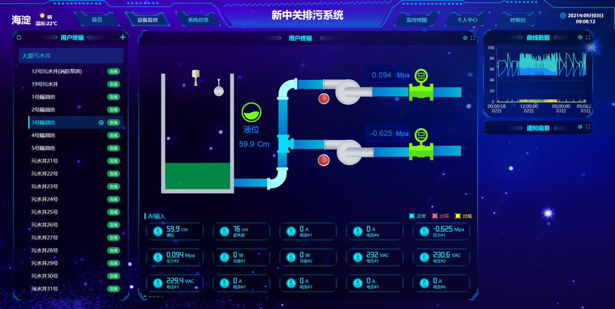 7、集中監控:云平臺支持接入多套監控系統的數據,集中監控所有設備的運行實況,統一匯總,遠程管理各地泵站的開關運行;