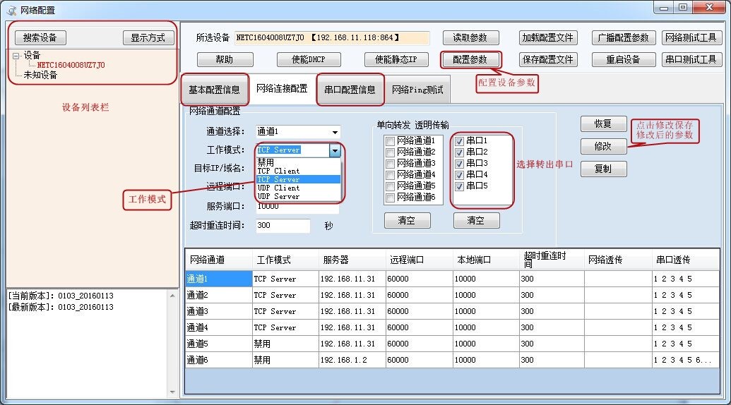 使用“以太網配置軟件”(相關下載內下載),配置設備的設備地址及設備的網絡通信模式。