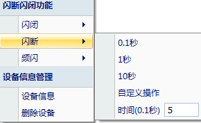 注:閃斷閃開模式不能寫入設備芯片內,軟件上選擇閃斷閃開模式后,所有通道都為閃斷閃開模式下,可通過發送單個通道的閃斷閃開指令來進行單個通道的控制,不影響其他通道的正常控制。