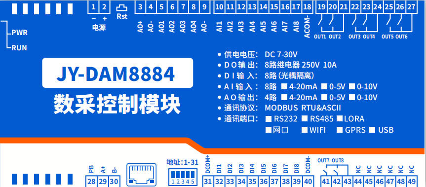 功能說(shuō)明:8DO+8DI+8AI