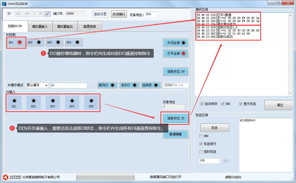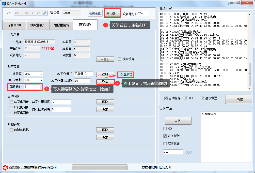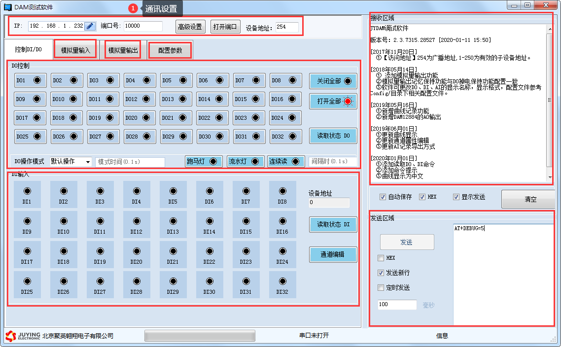詳細使用說明參考:JYDAM調試軟件使用說明