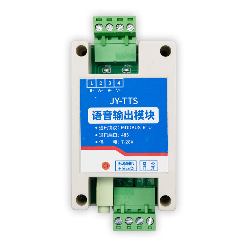 JY485-TTS 模塊是一款高性能的文本語音合成模塊,集成了485 通訊接 口,遵循Modbus 通信協議,該模塊支持個性化配置,包括單條語音的音量、音色及語速調整,滿足多樣化的應用場景需求。同時能夠同時保存多條語音信息。此外, JY485-TTS 模塊采用虛擬 Do 觸發機制,進一步提升了操作的便捷性和響應速度。