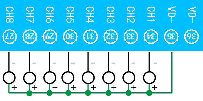 下圖中的電源部分為傳感器供電,AD1-AD14接傳感器信號正,6腳GND為傳感器信號負。