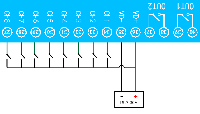 閃開模式:對繼電器每操作一次,繼電器則閉合1秒(實際時間【單位秒】=設置數字*0.1)后自行斷開;