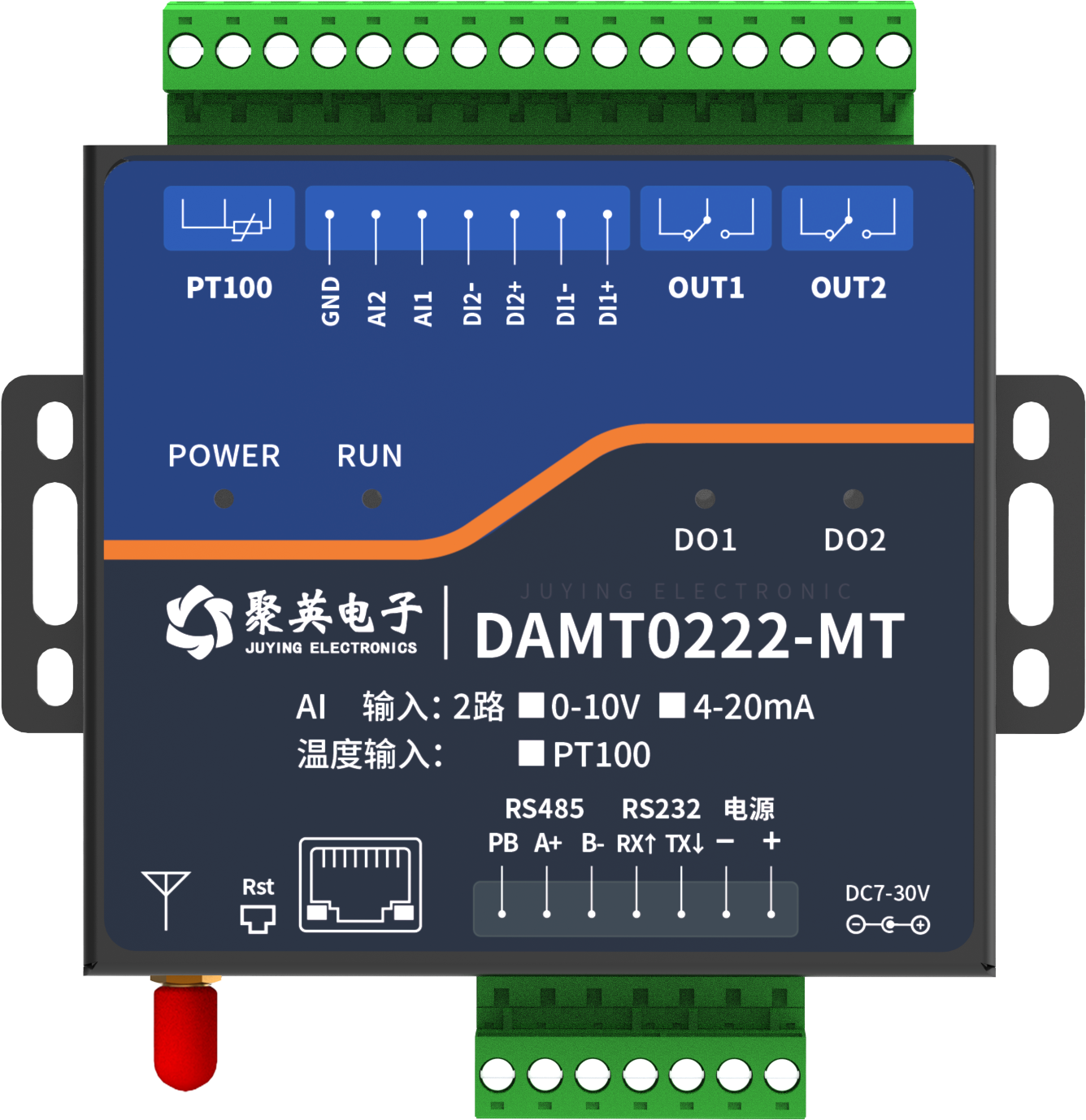 功能說明:2DO+2DI+2AI+1PT